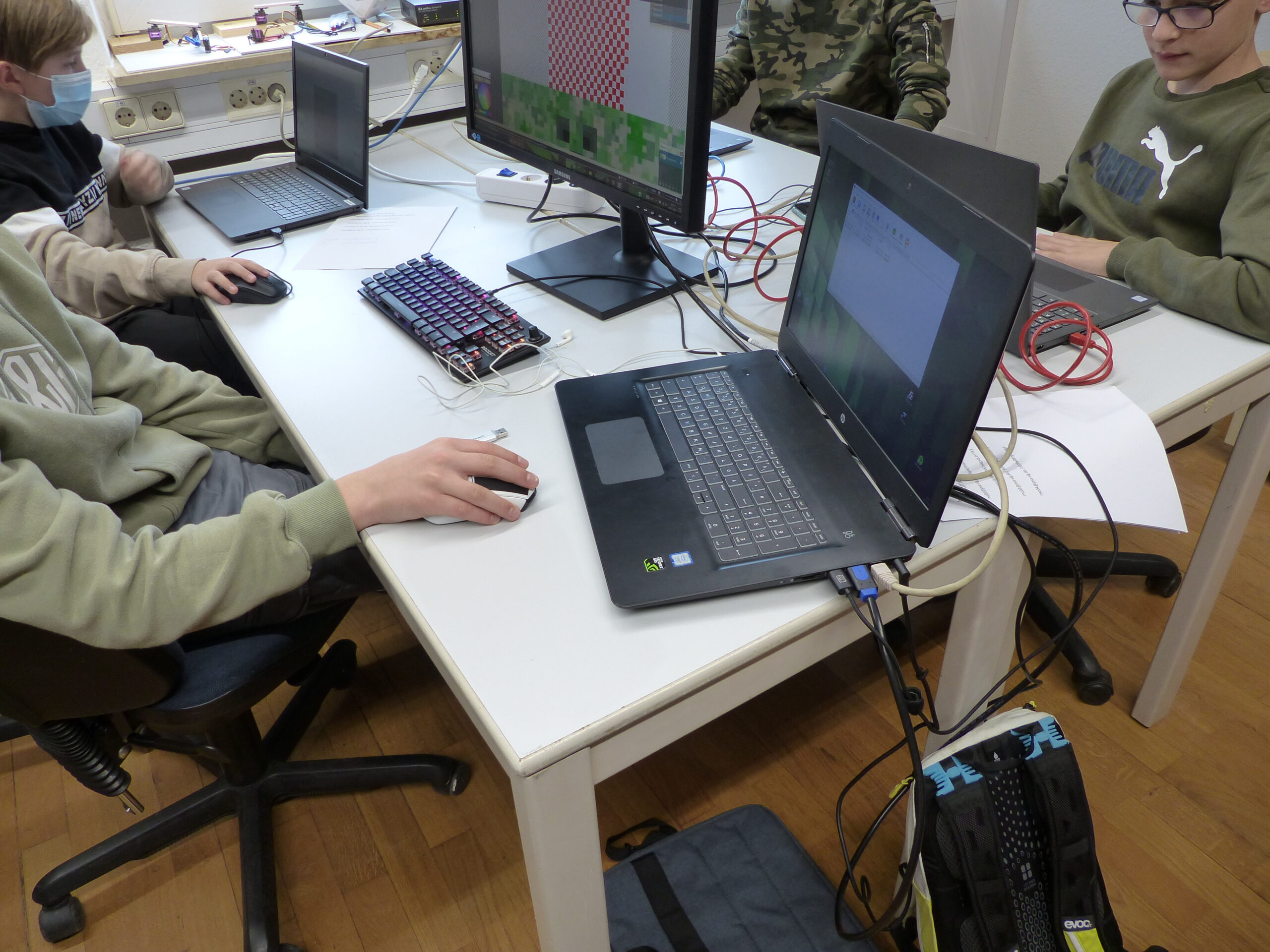 Minecraft besteht nahezu vollständig aus Blöcken, dessen Aussehen über sogenannte „Texturepacks“ bestimmt werden. Diese Texturepacks bestehen aus bis zu 2000 einzelnen Bilddateien, in welchen die einzelnen Texturen für die jeweiligen Blöcke hinterlegt sind. Der Vorteil daran: Sie sind dadurch sehr einfach veränderbar. Durch jedes erdenkliche Zeichenprogramm, mit welchen man diese Bilddateien bearbeiten kann, lassen sich ganz eigene Texturen für das Spiel schaffen. Die Teilnehmer nutzen hierfür das Programm „paint.net“. Wie aufwendig das ganze Projekt am Ende wird ist davon abhängig, wie viel man tatsächlich verändern möchte. Jeder kann für sich selber entscheiden, welchen Block oder welches Item man wie sehr verändern möchte, denn von diesen gibt es in Minecraft viele. Auch wenn sie deshalb nicht das komplette Aussehen des Spiels an dem einen Tag verändern konnten, so haben die Teilnehmer doch bereits einige echt gut aussehende und kreative Texturepacks für das Spiel geschaffen.