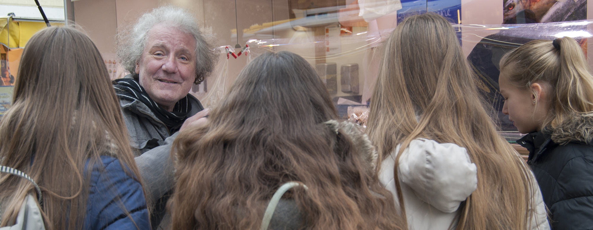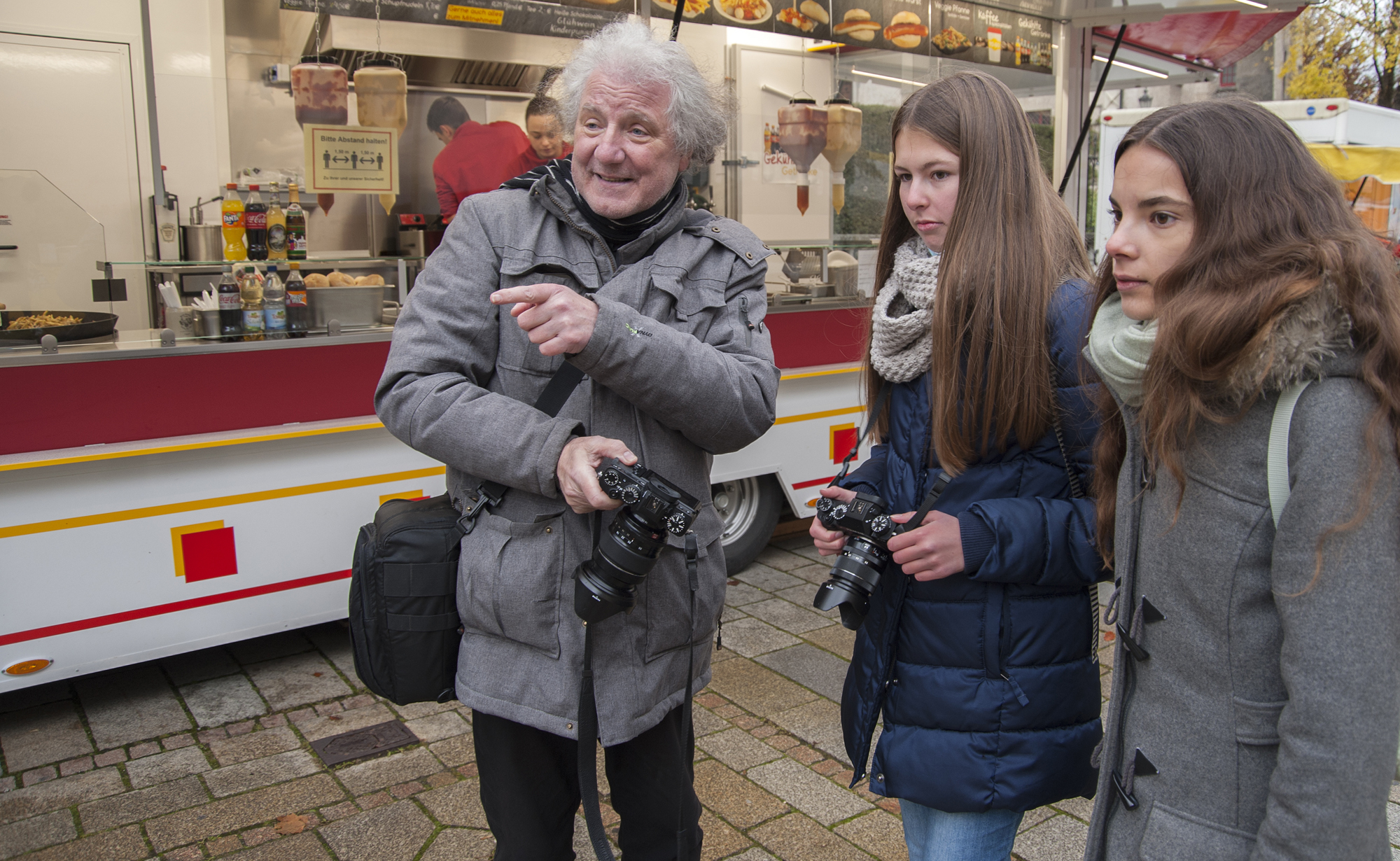 Bei „Streetphotography“ geht es nicht nur darum, Straßen zu fotografieren. So einfach wie möglich den „Lebensraum Mensch“ einfangen, so, wie er tatsächlich ist – Das war das Ziel für die Teilnehmer an diesem Tag. Nach einer kurzen Präsentation und Einweisung fuhren sie auch schon in die Stadt, um genau dies in die Tat umzusetzen. Sie versuchten, die Welt um sie herum gezielt zu beobachten, bestimmte Situationen vorauszusehen und alltägliche Momente in ihrer natürlichsten Form als Motive einzufangen. Dabei auch ganz wichtig: Wie schießt man ein solches Foto, auf welchem man im Grunde Menschen ohne Vorwissen fotografiert, ohne die strikten Datenschutzbestimmungen in Deutschland zu verletzen? Mit diesen Dingen aber abgeklärt und auf der ständigen Hut nach dem besten Motiv sind ganz fantastische Schnappschüsse entstanden. Anschließend folgte noch ein kurzer Crashkurs in das weite Feld der Bildbearbeitung, welcher einen kurzen Einblick in die vielen Möglichkeiten und Tricks der Fotoindustrie gab.