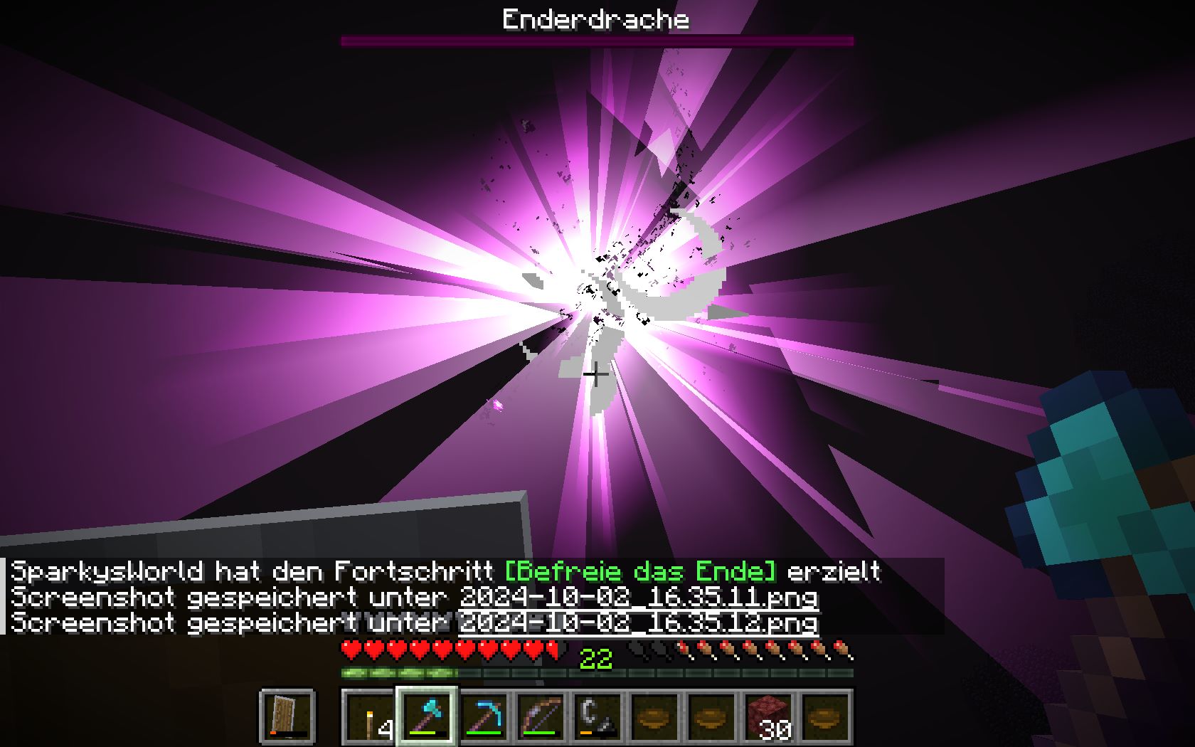 Zwei unserer Jungs besiegten zum Schluss den Enderdrachen. Das Team Drachenei blieb aber nicht lange zusammen, da es nur ein Drachenei zum besitzen gab.